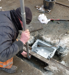 Afgelopen dinsdag werden groeven van de trambaan schoongespoten. Eind februari en begin maart worden railboxen schoongemaakt en beoordeeld. Railboxen zijn boxen waar telpunten in zitten. Deze telpunten geven informatie over de drukte op het spoor. Om ze goed werkend te houden, worden de railboxen een paar keer per jaar schoongemaakt en vervangen als dit nodig is. Om bij de railboxen te komen wordt beton eromheen weggehakt. Dit geeft geluid, zeker in de nacht als er minder omgevingsgeluid is.
